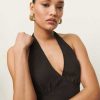 Let those legs out. Shop the Delanie Dress from Reformation, a sleeveless dress with a deep v-neckline, bust cup seams, and a tie at the back.