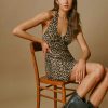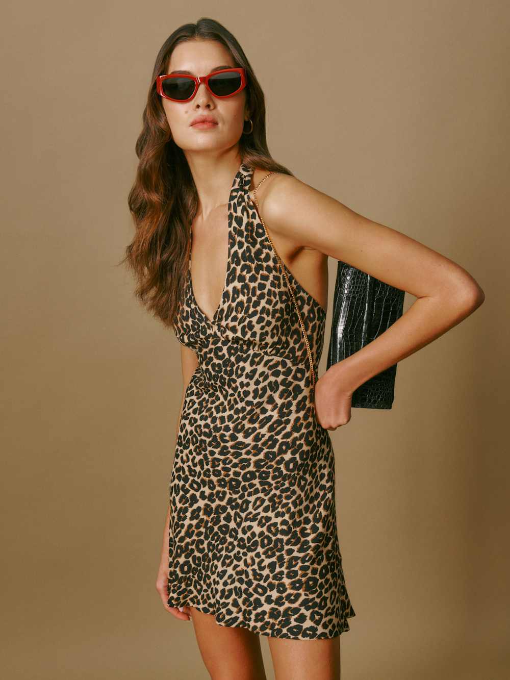 Let those legs out. Shop the Delanie Dress from Reformation, a sleeveless dress with a deep v-neckline, bust cup seams, and a tie at the back.