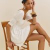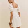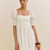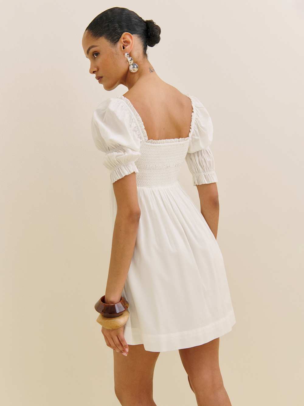 Wear the dress. Shop the Dione Dress from Reformation, a mini dress with short puffed sleeves and a smocked bust.