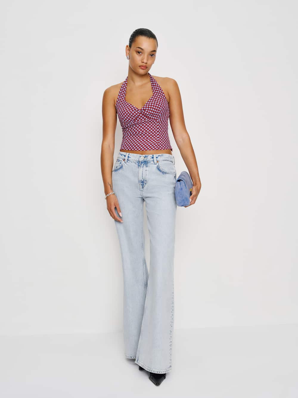 For when the temps go up. Shop the Dolce Top from Reformation, a sleeveless halter top with an adjustable tie and smocking in the back.