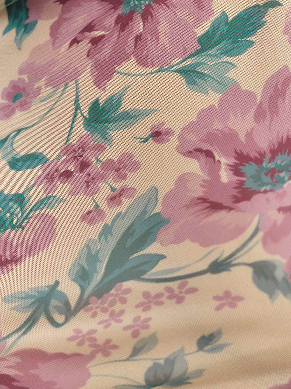 This is a deadstock mesh fabric made from 90% Polyester and 10% Spandex. Hand wash + dry flat.