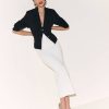 Layer up. Shop the Easton Jacket from Reformation, a structured jacket with a collared neckline, button front, and a tailored fit.