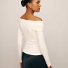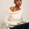 Up top. Shop the Elio Knit Top from Reformation, a long sleeve top with a foldover off the shoulder neckline.