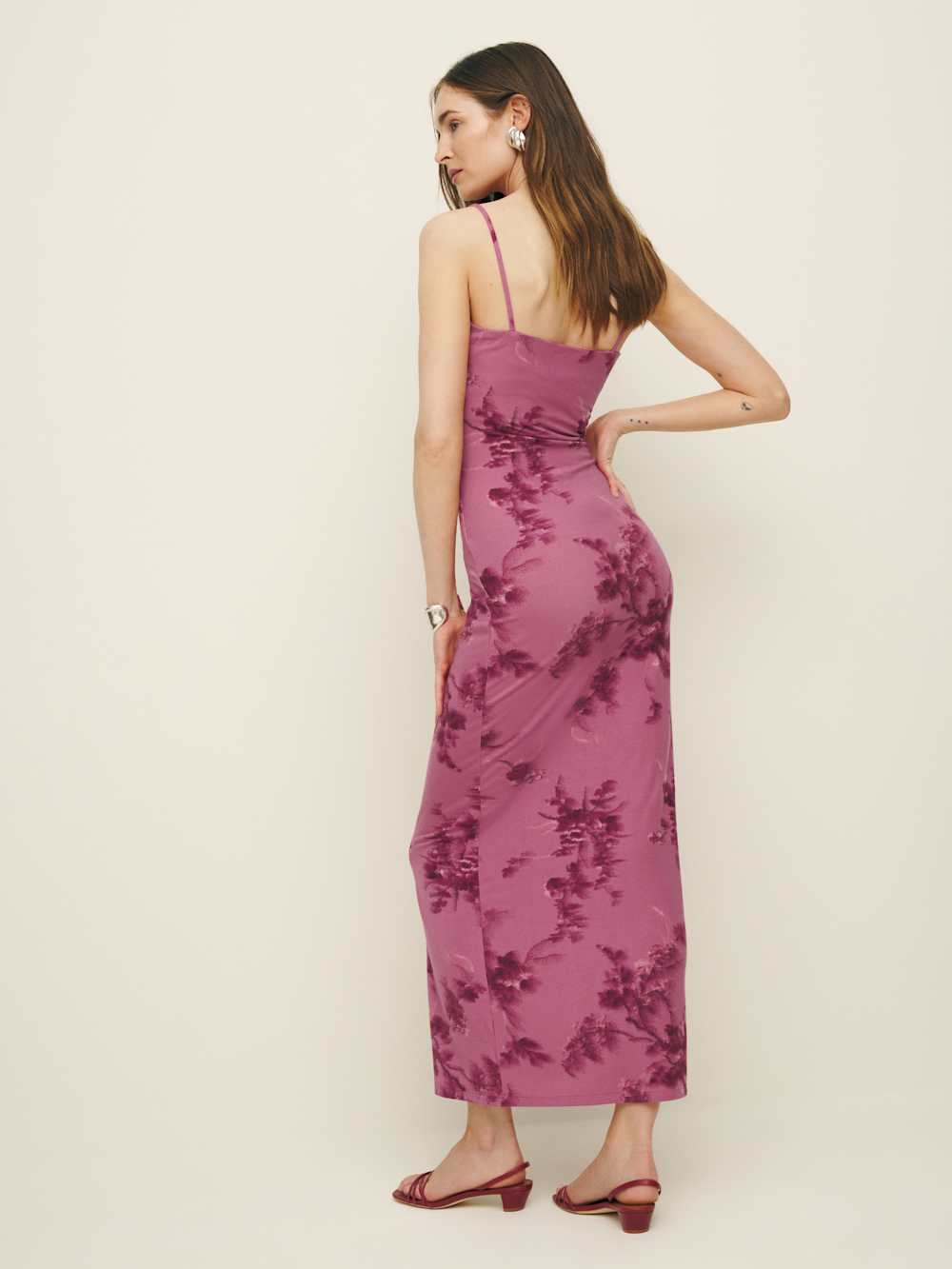 Soft and stretchy. Shop the Elise Knit Dress from Reformation, a sleeveless full-length dress with a square neckline.