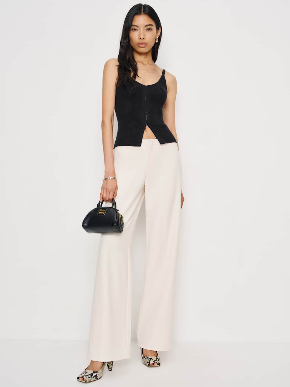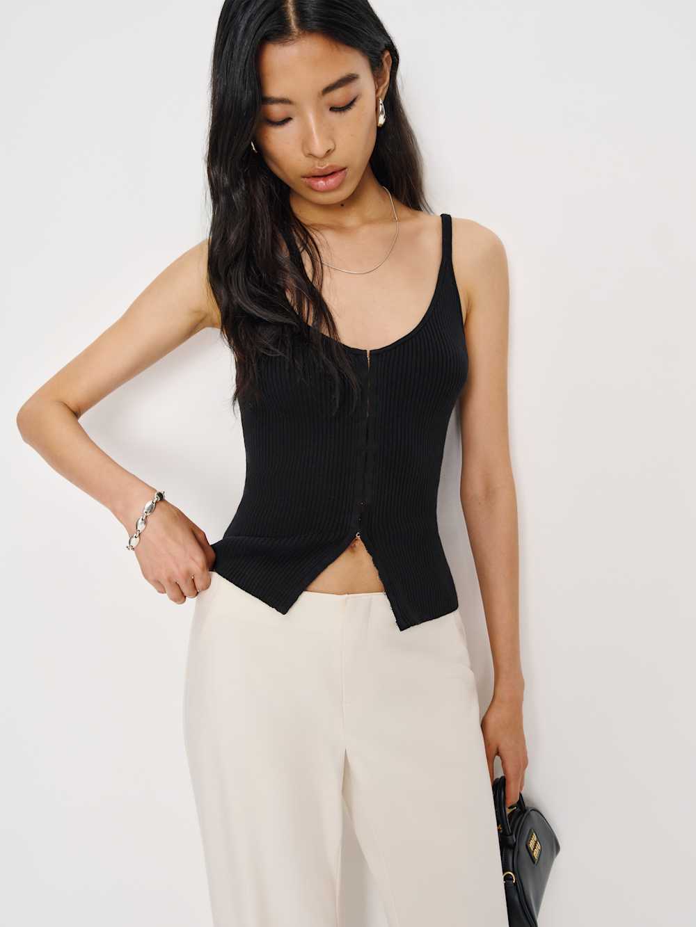 You must be new. Shop the Eloise Cotton Sweater Tank from Reformation, a sleeveless top with a scoop neck and adjustable hook and eye closure down the front.