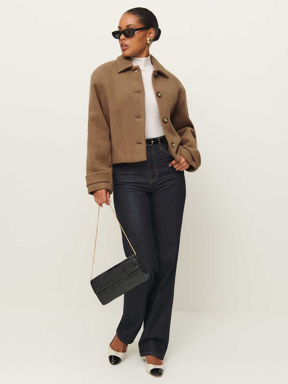 Shop the Enzo Jacket from Reformation, a collared jacket with a relaxed fit.