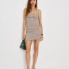 The model is wearing a size XS and is 5’9", 23.5" waist, 34" hips, 34" bust.