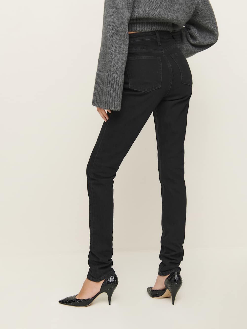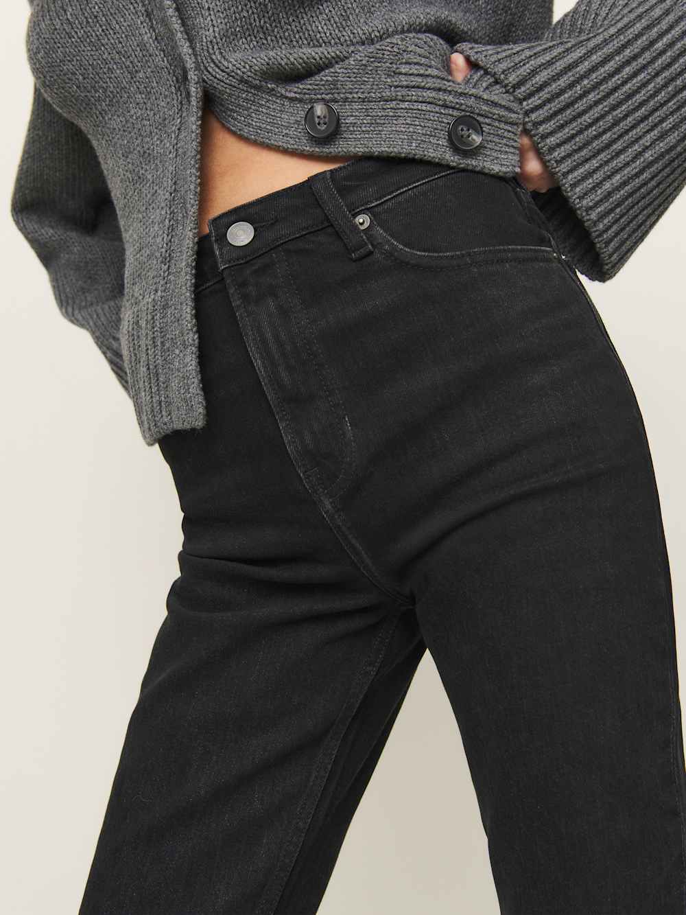 Denim – your uniform since forever. Shop the Etta Stretch High Rise Stacked Slim Jeans, sustainable jeans from Reformation.
