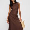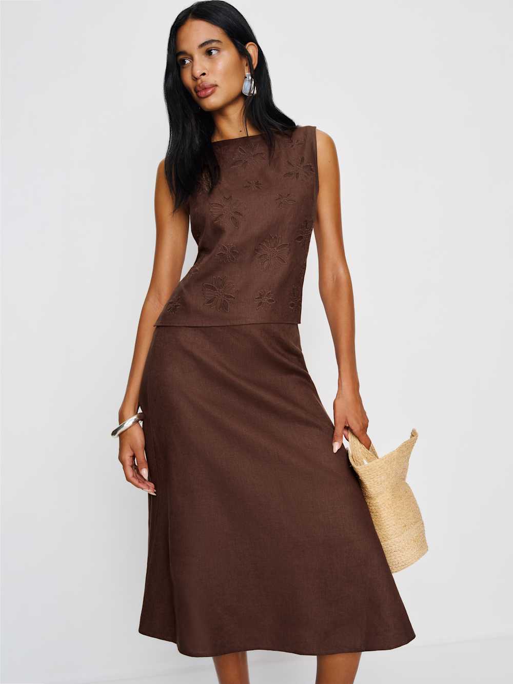 You make it look easy. Shop the Evelina Linen Top from Reformation, a sleeveless high neck top with an open back and adjustable tie detail.