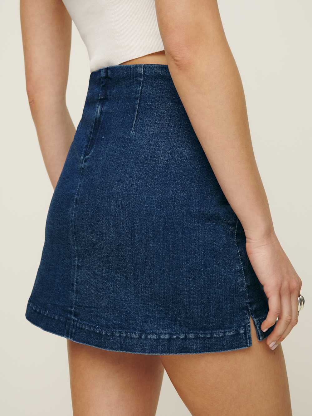 Denim – your uniform since forever. Shop the Everly Denim Mini Skirt, a sustainable skirt from Reformation.