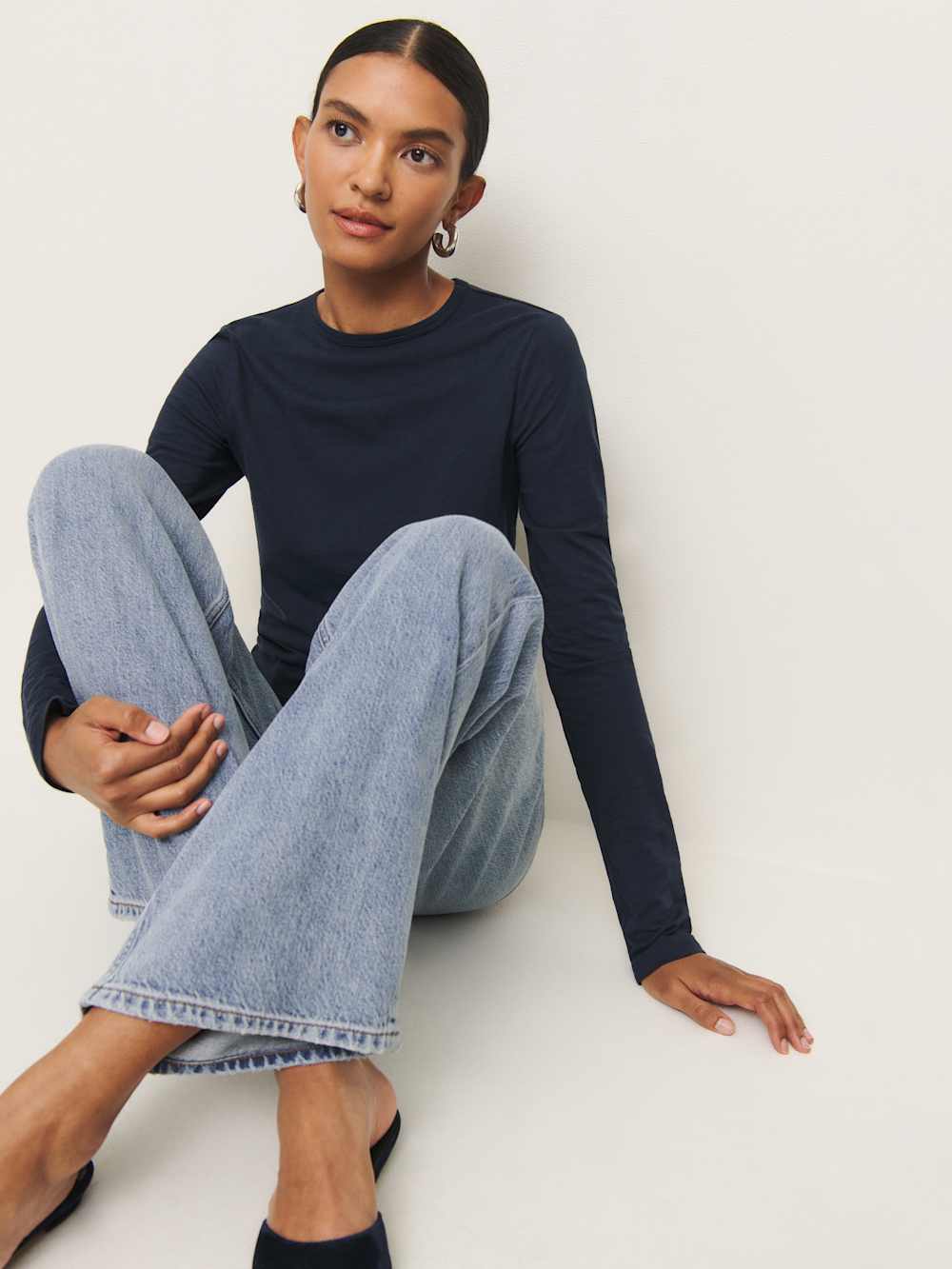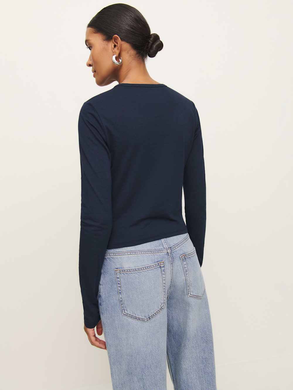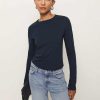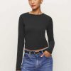 Shop the Ezra Slim Fit Long Sleeve from Reformation, a fitted long-sleeve tee with a crew neckline.