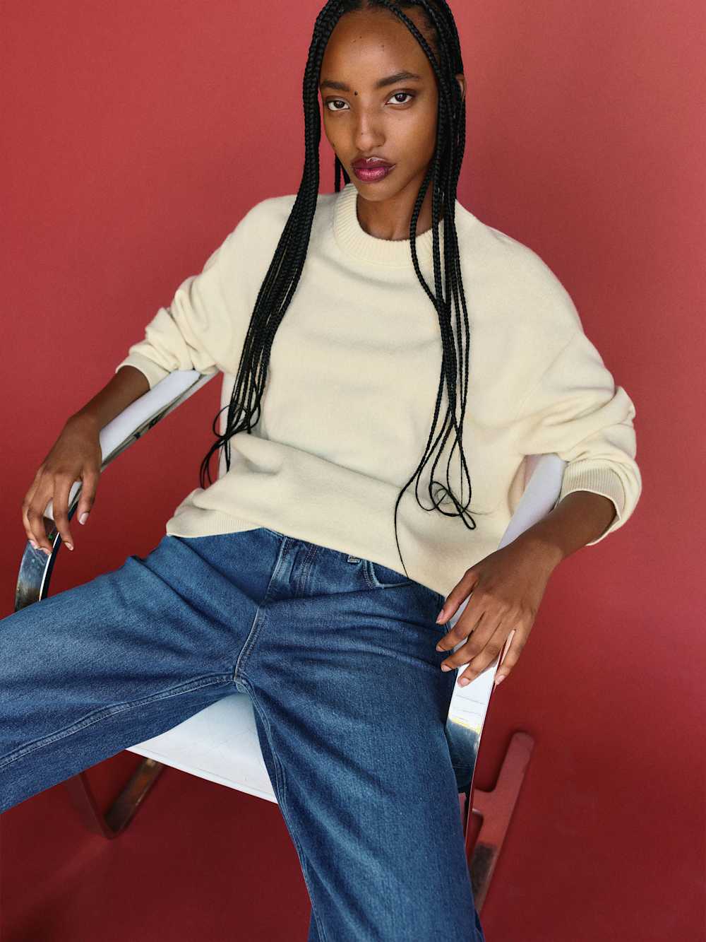 It’s getting cold-ish. Shop the Fabian Regenerative Wool Crew, a sustainable sweater from Reformation.