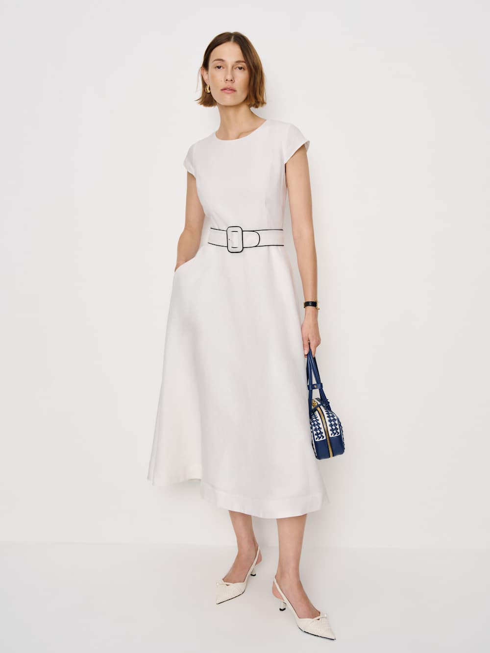 May cause compliments. Shop the Felipe Belted Linen Dress from Reformation, a midi short-sleeved dress with an A-line fit and an adjustable belt detail.