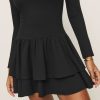 Easy little mini. Shop the Flynn Knit Dress from Reformation, a long-sleeve mini dress with a square neckline, drop waist, and tiered ruffle skirt.