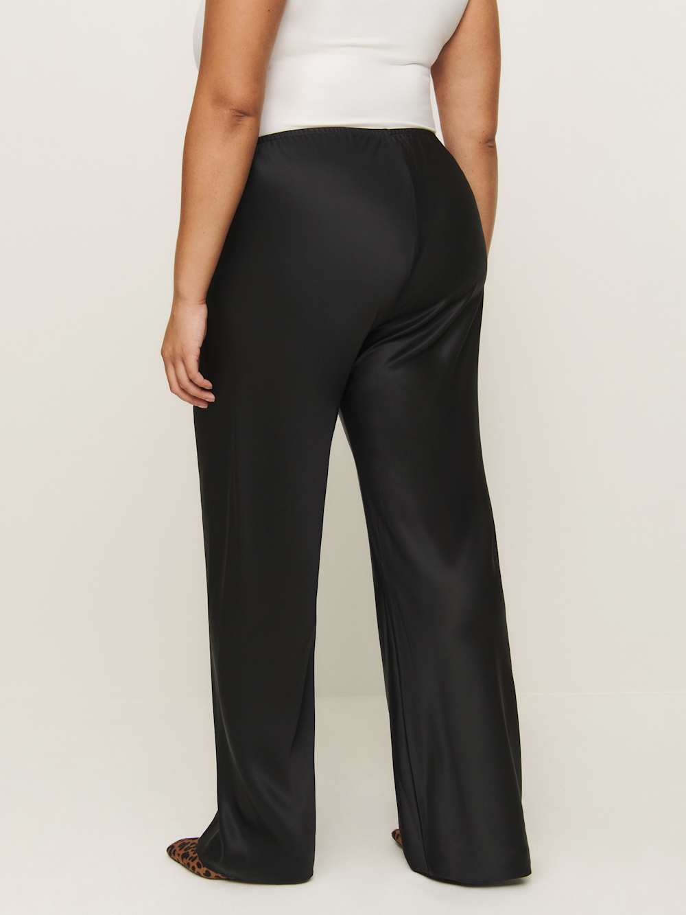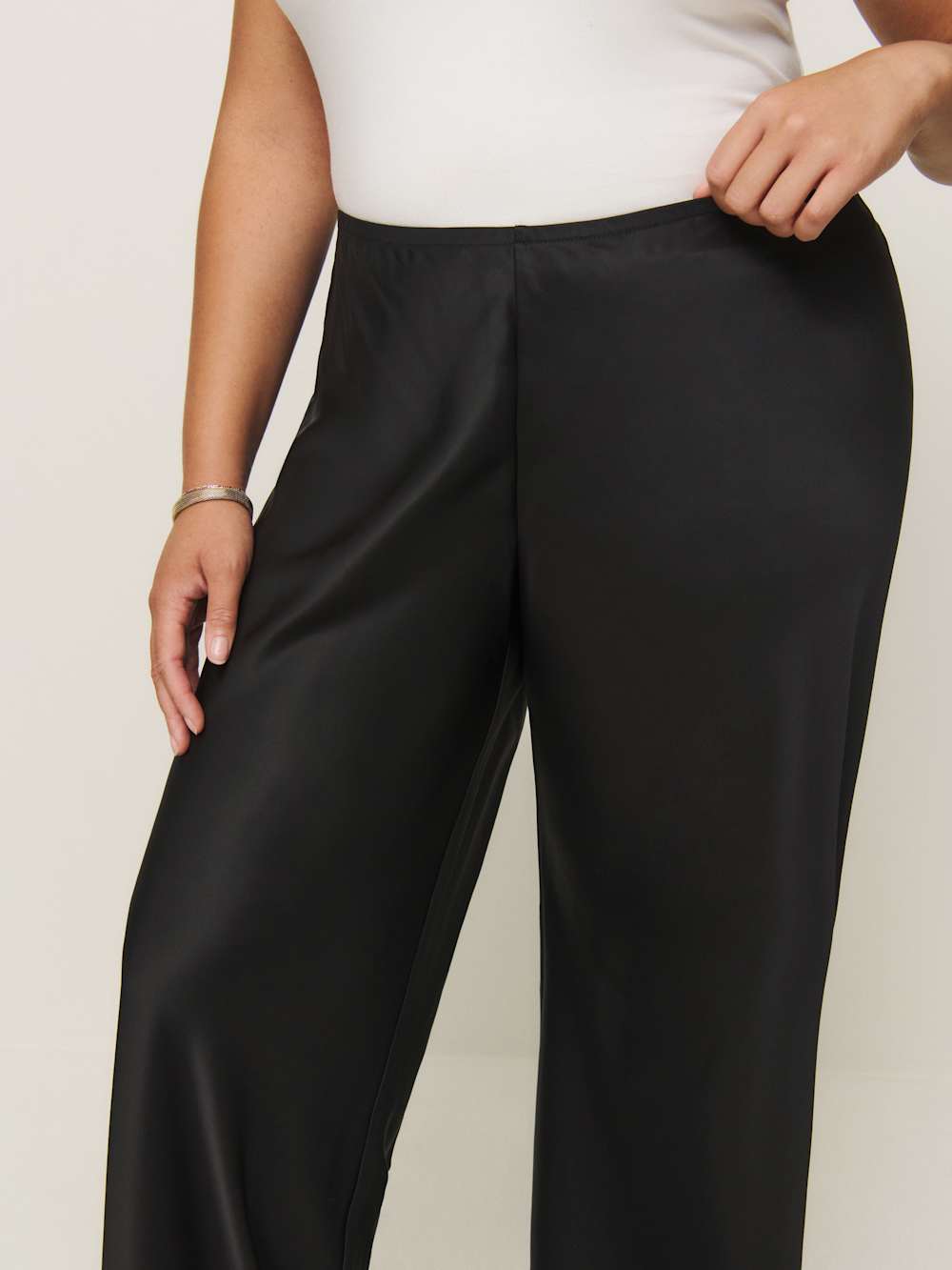 No nonsense. Shop the Gale Satin Mid Rise Bias Pant ES from Reformation, a mid-rise, bias-cut pant with an elastic waistband.