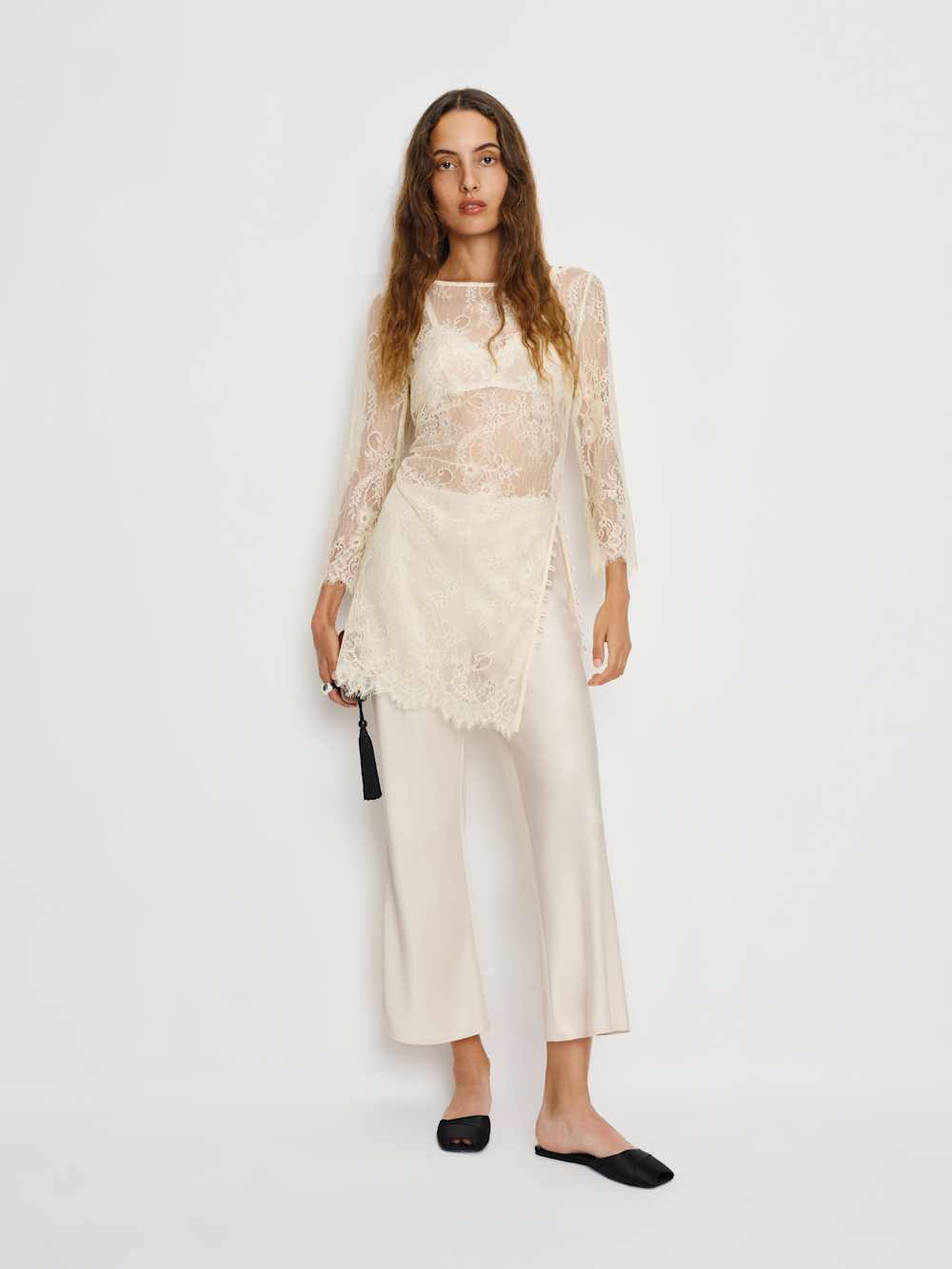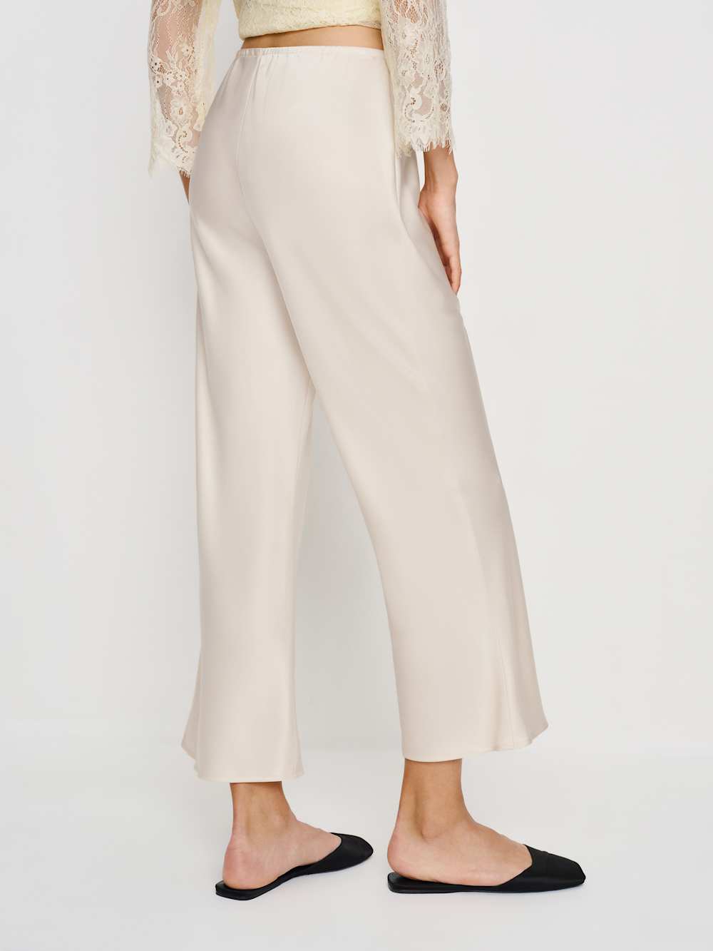 What do we have here? Shop the Gale Satin Mid Rise Capri Pant from Reformation, a mid-rise bias-cut pant with an elastic waistband and a cropped leg.
