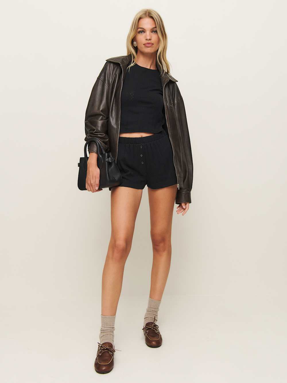 One and done. Shop the Giselle Pointelle Knit Two Piece from Reformation, a two-piece set with a crew neck tee and matching boxer-style short.