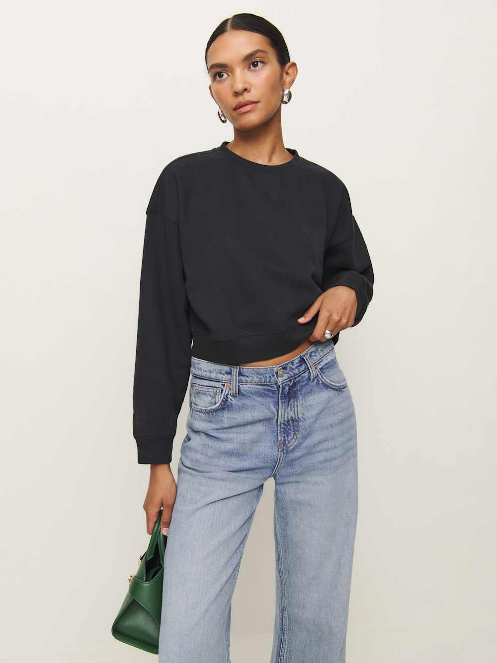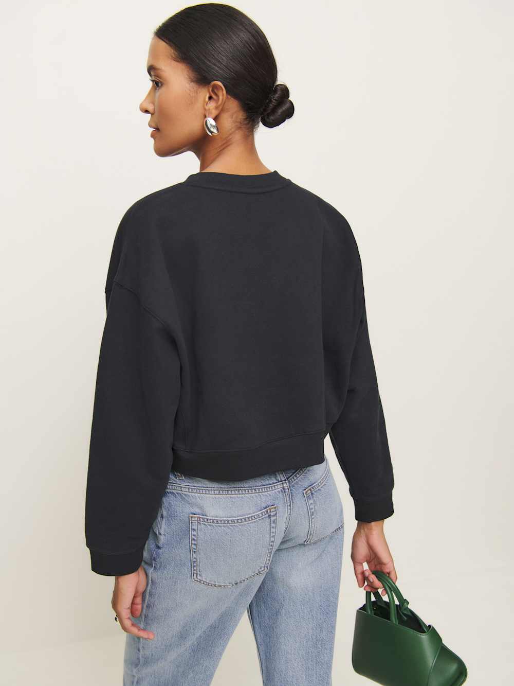 Shop the Grace Cropped Vintage Oversized Crewneck Sweatshirt from Reformation, a cropped, oversized sweatshirt with a crew neckline.
