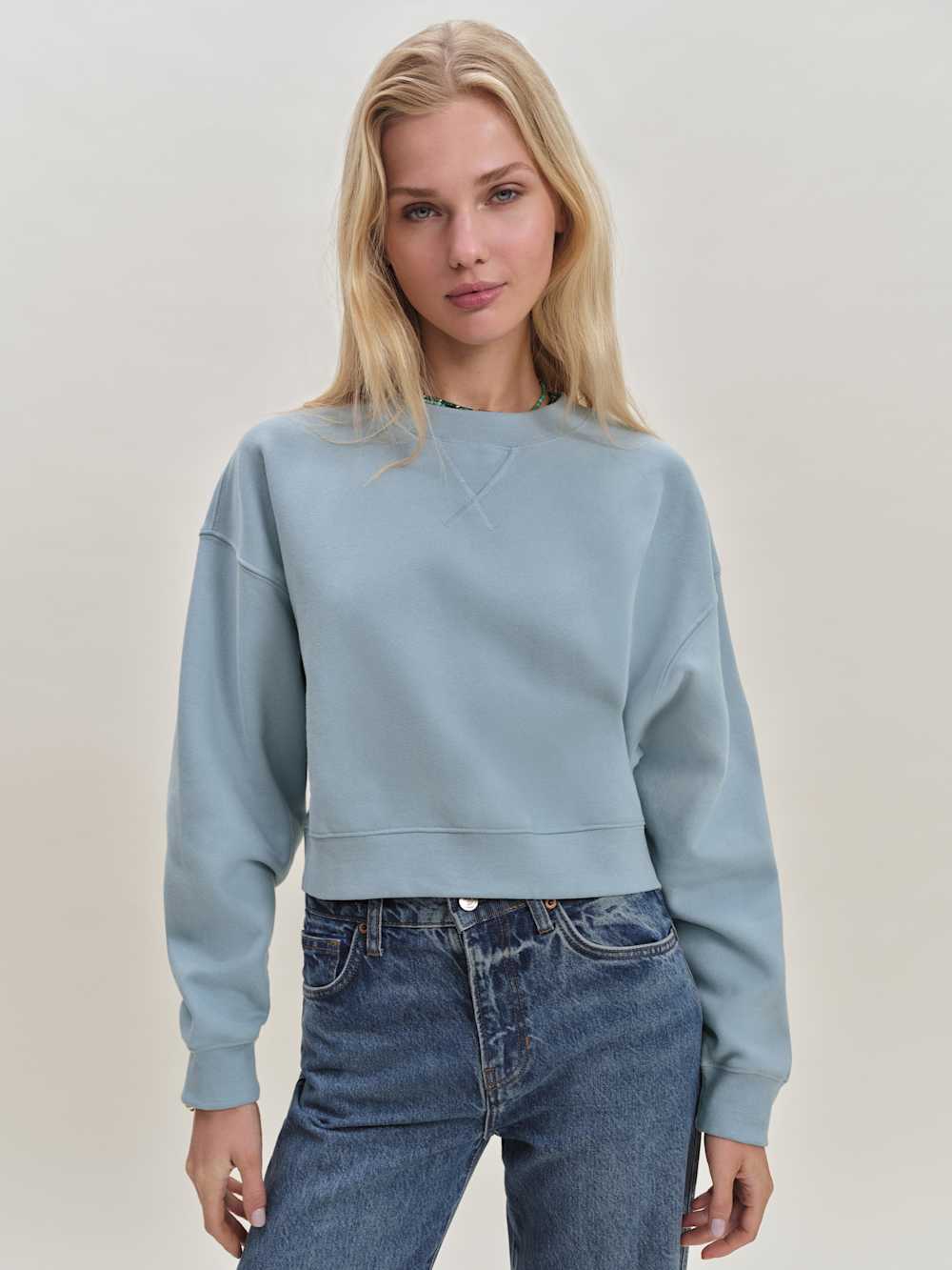 Shop the Grace Cropped Vintage Oversized Crewneck Sweatshirt from Reformation, a cropped, oversized sweatshirt with a crew neckline.