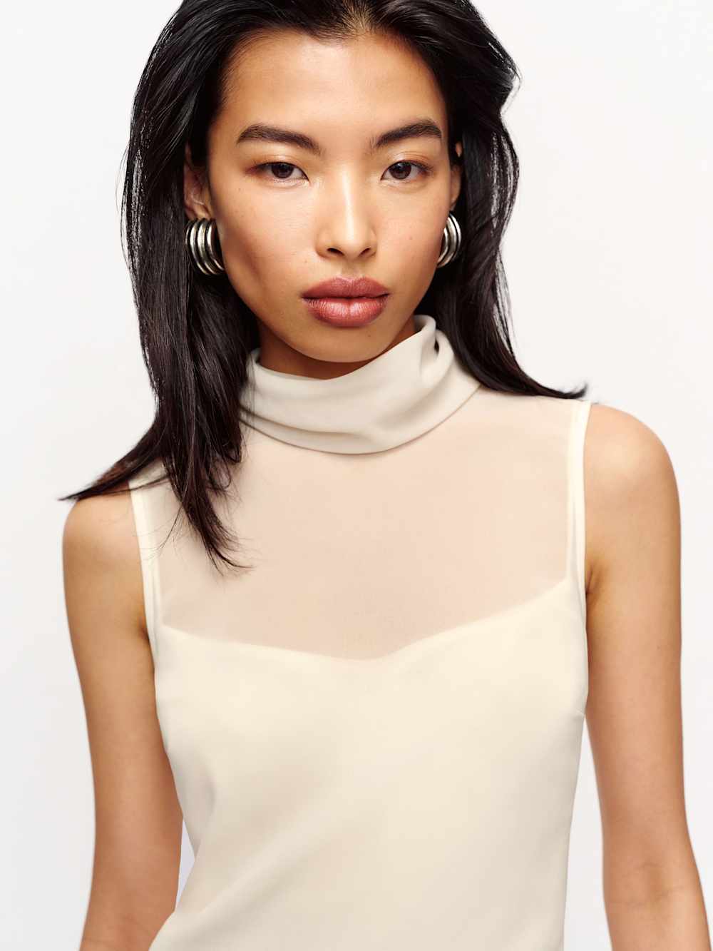 The model is wearing a size 0 and is 5’10", 24.5" waist, 34.5" hips, 31" bust.