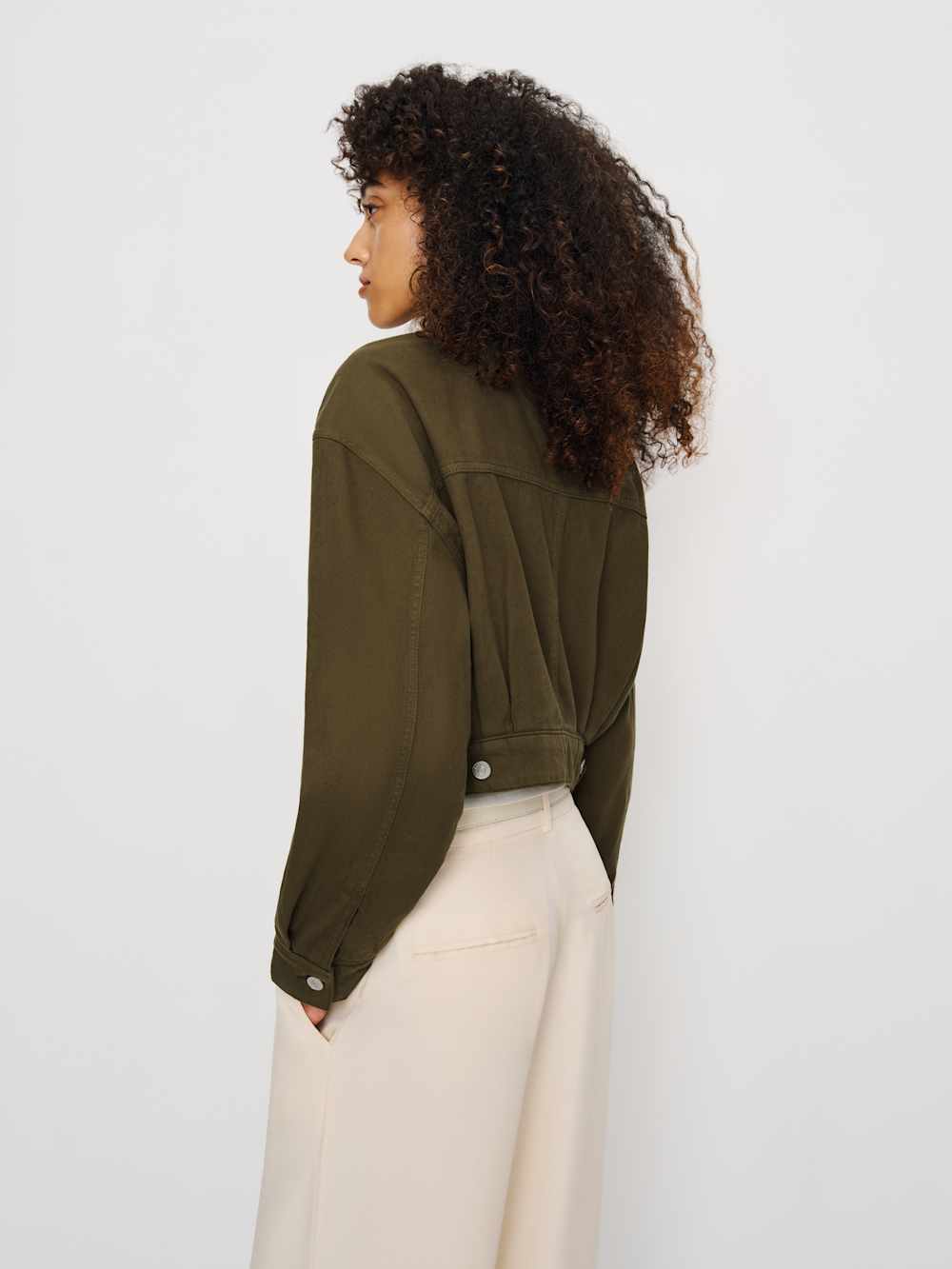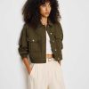 Layer up. Shop the Hudson Military Twill Jacket from Reformation, a jacket featuring functional button closure, a collared neckline, and patch pockets.