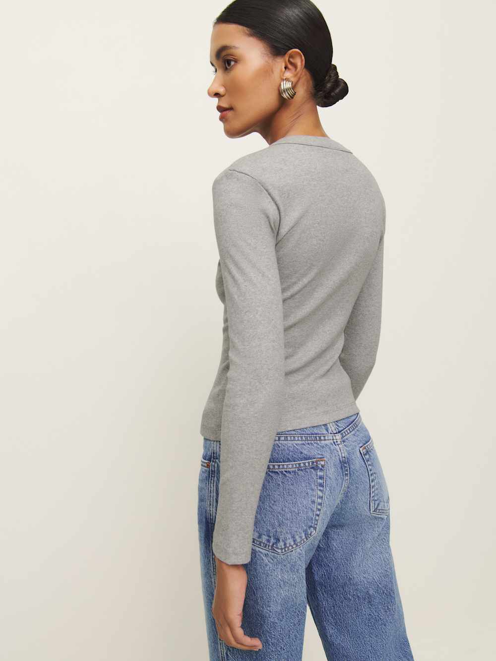Up top. Shop the Hugh Knit Top from Reformation, a henley-style long-sleeved top with a button front.