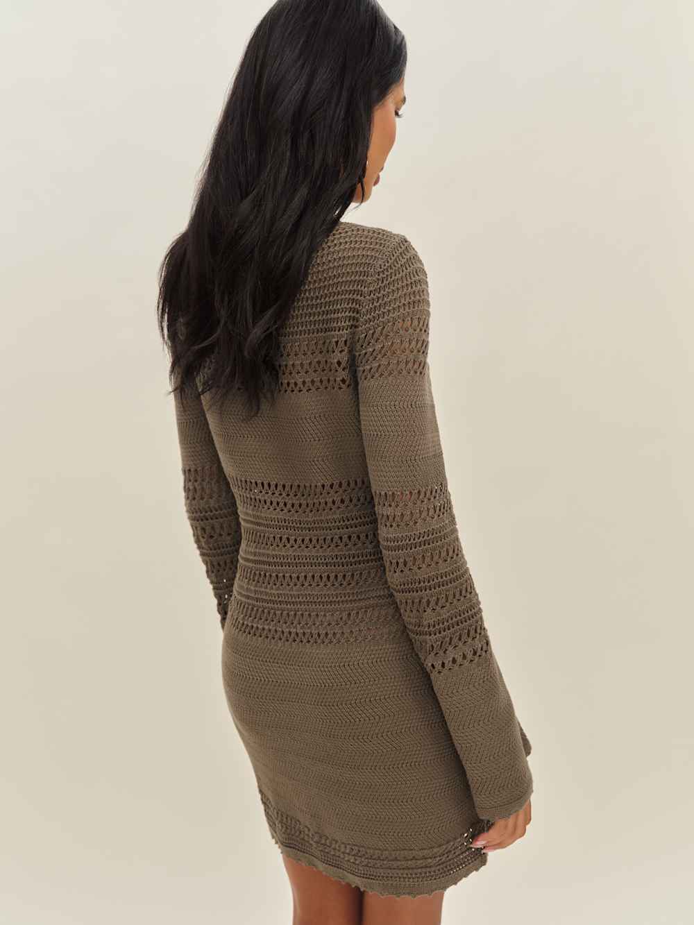 No nonsense. Shop the Inda Open Knit Mini Dress from Reformation, a mini-length dress with long bell sleeves.