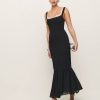 Romance for one.  Shop the Irisa Dress from Reformation, a midi dress with a sweetheart neckline, lace detailing, and a ruffled hem.