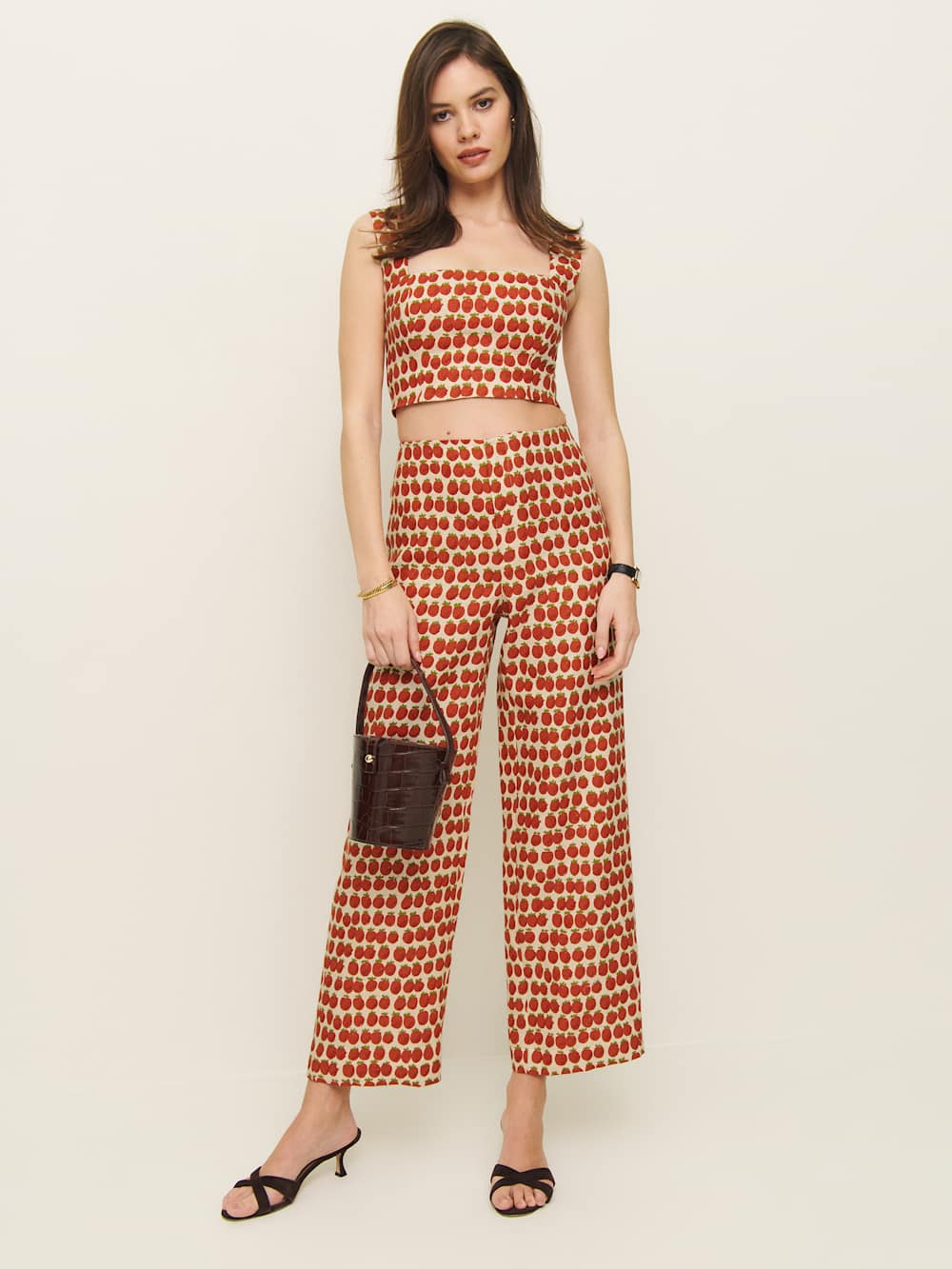 Up top. Shop the Jasmine Linen Top from Reformation, a sleeveless cropped top with a square neck and thick shoulder straps.