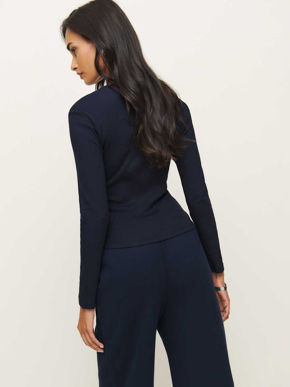 Shop the Jayden Long Sleeve Henley Tee from Reformation, a slim, fitted tee with a henley neckline.