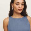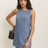 Show some leg. Shop the Jessi Linen Dress from Reformation, a relaxed fitting mini dress with a crew neckline and a keyhole cut out on the back.