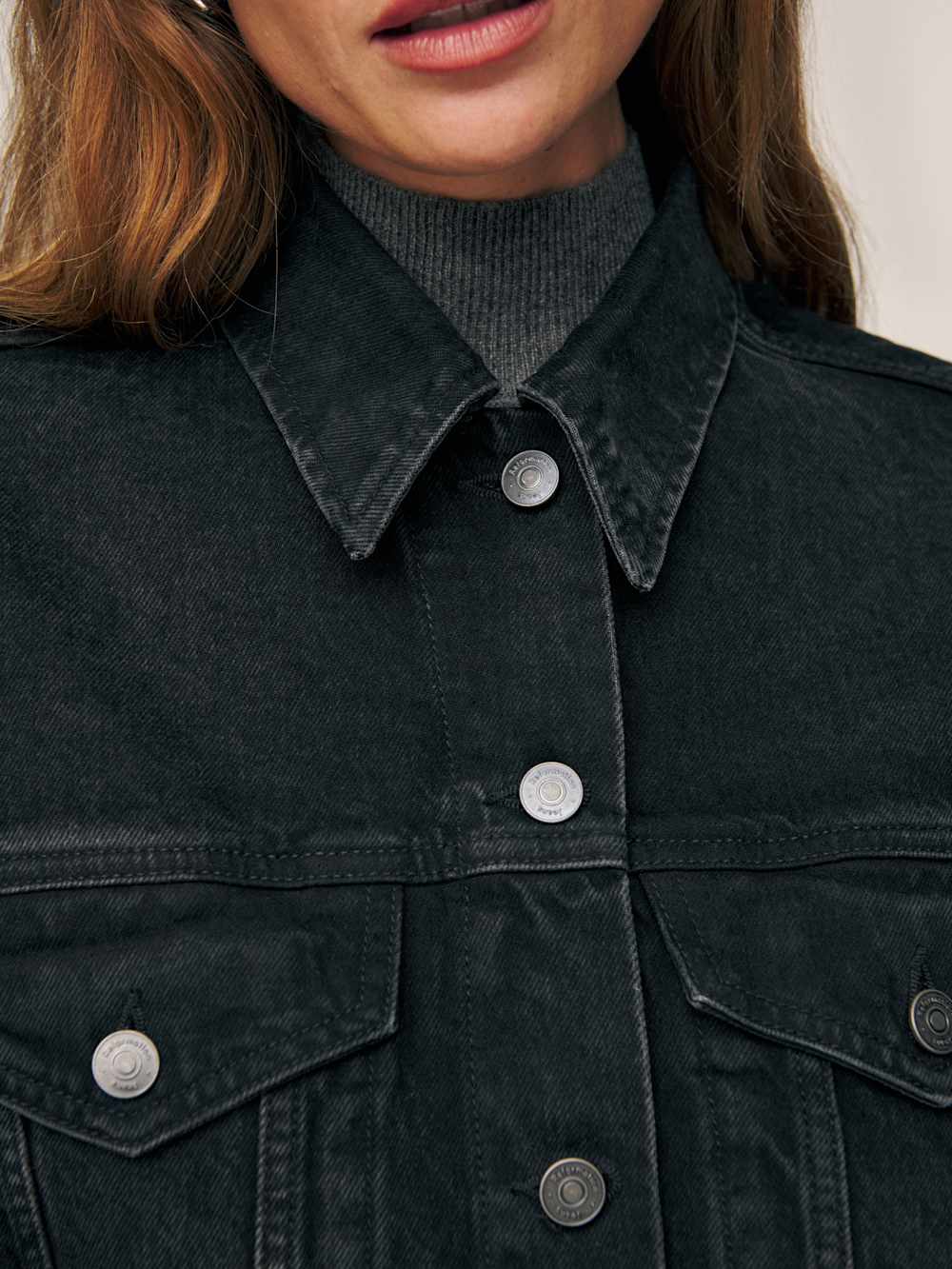 Layer up. Shop the Jori Cropped Denim Jacket from Reformation, a cropped button front shirt jacket. It features a collared neckline and patch pockets.