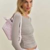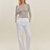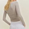 Up top. Shop the Julian Knit Top from Reformation, a long-sleeved knit top with an opaque bodice and ruching throughout.