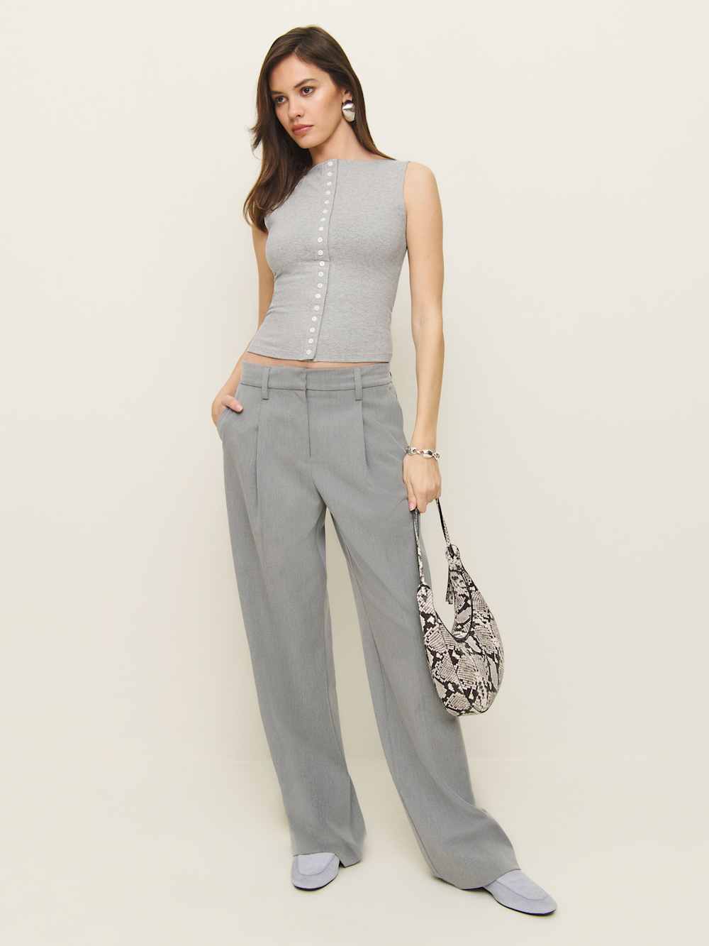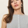 Up top. Shop the Julie Knit Top from Reformation, a sleeveless top with a high neckline and button front.