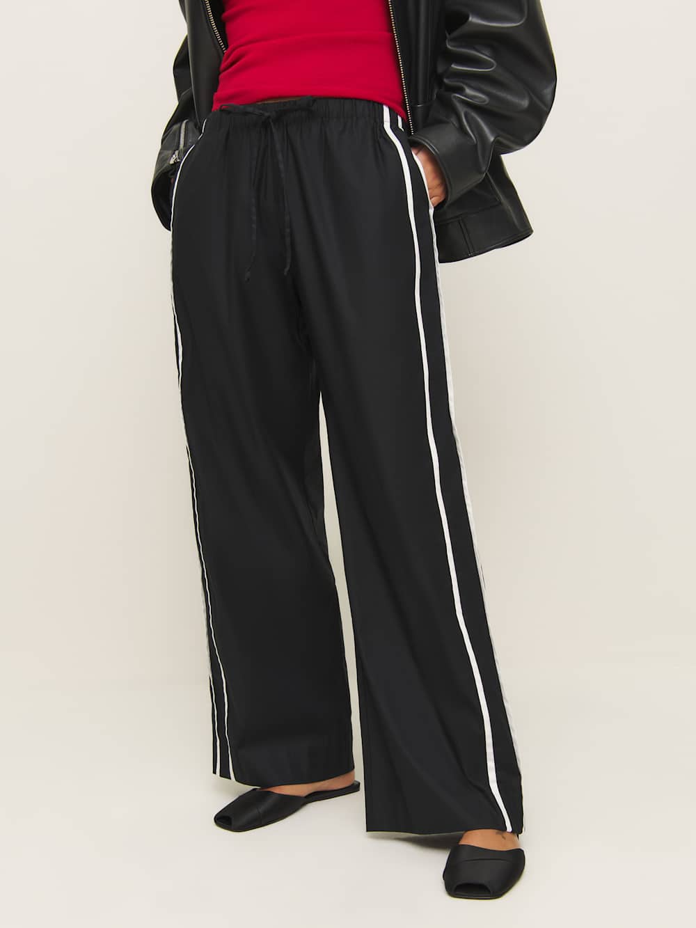 No nonsense. Shop the Julien Pant from Reformation, a mid-rise pant with an elastic waist, side pockets, and a side stripe detail.
