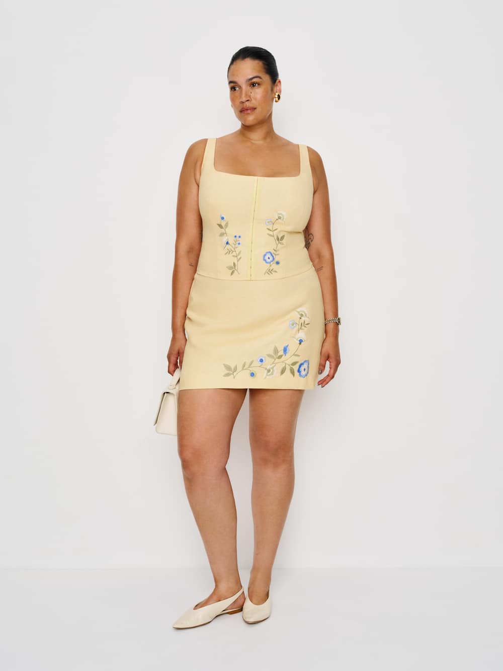 Up Top. Shop the Juliet Linen Top ES from Reformation, a sleeveless linen top with a straight neckline, hook-and-eye closures at the front, and back smocking.