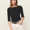 Up top. Shop the Kacey Knit top from Reformation, a knit top with a 3/4 length sleeve scoop neckline.