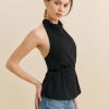 Up top. Shop the Ketra Knit Top from Reformation, a sleeveless top with a high cowl neckline and an adjustable tie at the waist.
