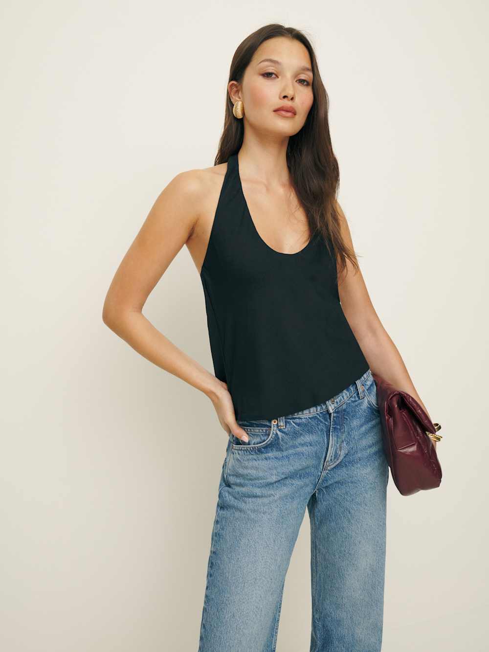 You flirt. Shop the Kylo Top from Reformation, a sleeveless top with a scoop halter neckline.