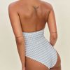Shop the Lagos One Piece Swimsuit from Reformation, a sleeveless one piece swimsuit with a collared neckline and button front.