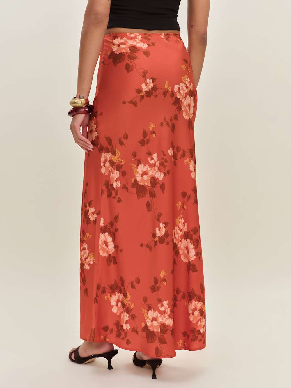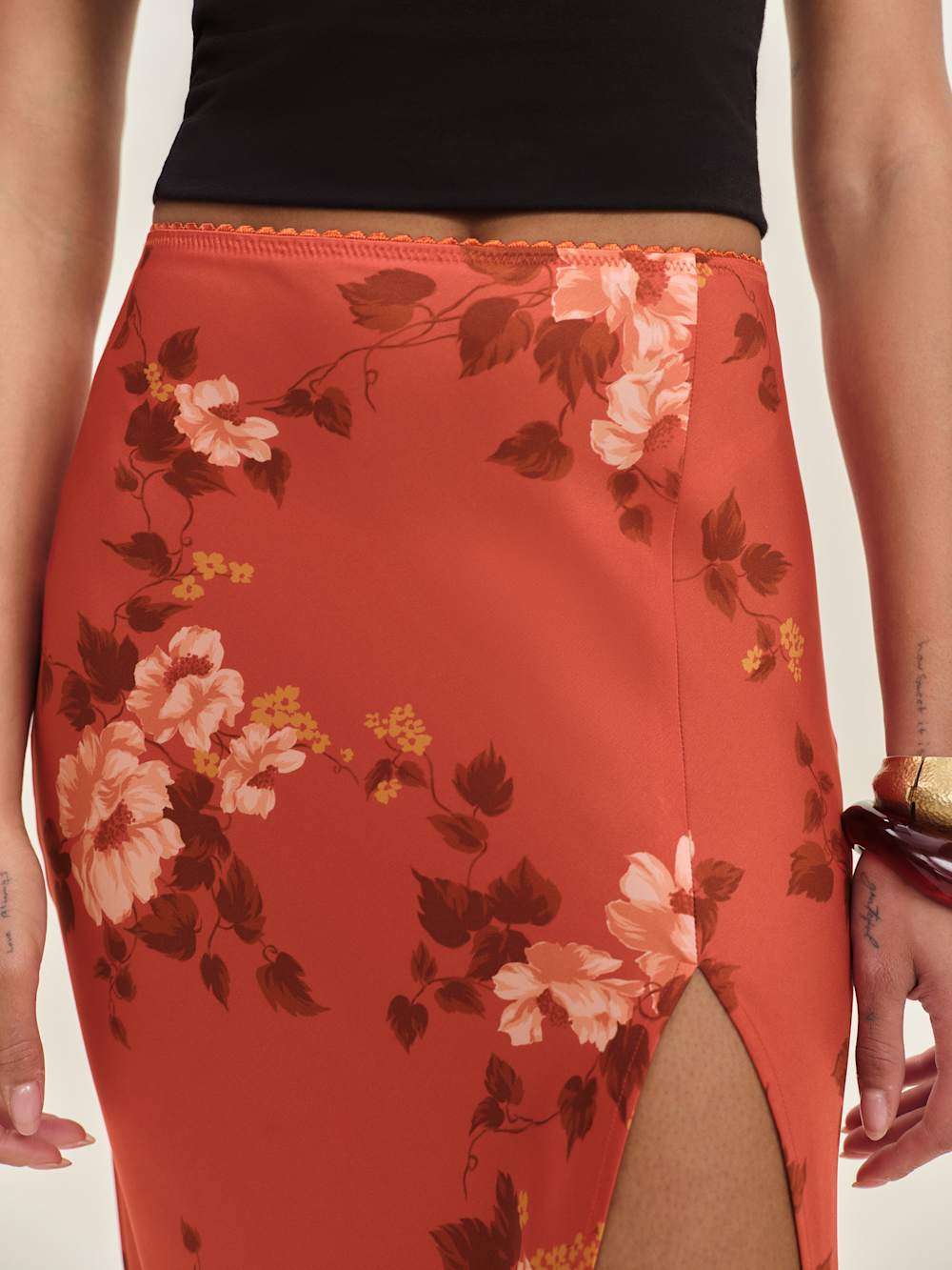 Wear the skirt. Shop the Layla Satin Skirt With Slit, a sustainable skirt from Reformation.