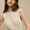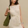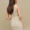 Shop the Lilliana Linen Cotton Crochet Dress from Reformation, a sleeveless mini dress with a high neckline and adjustable tie at the waist.