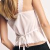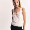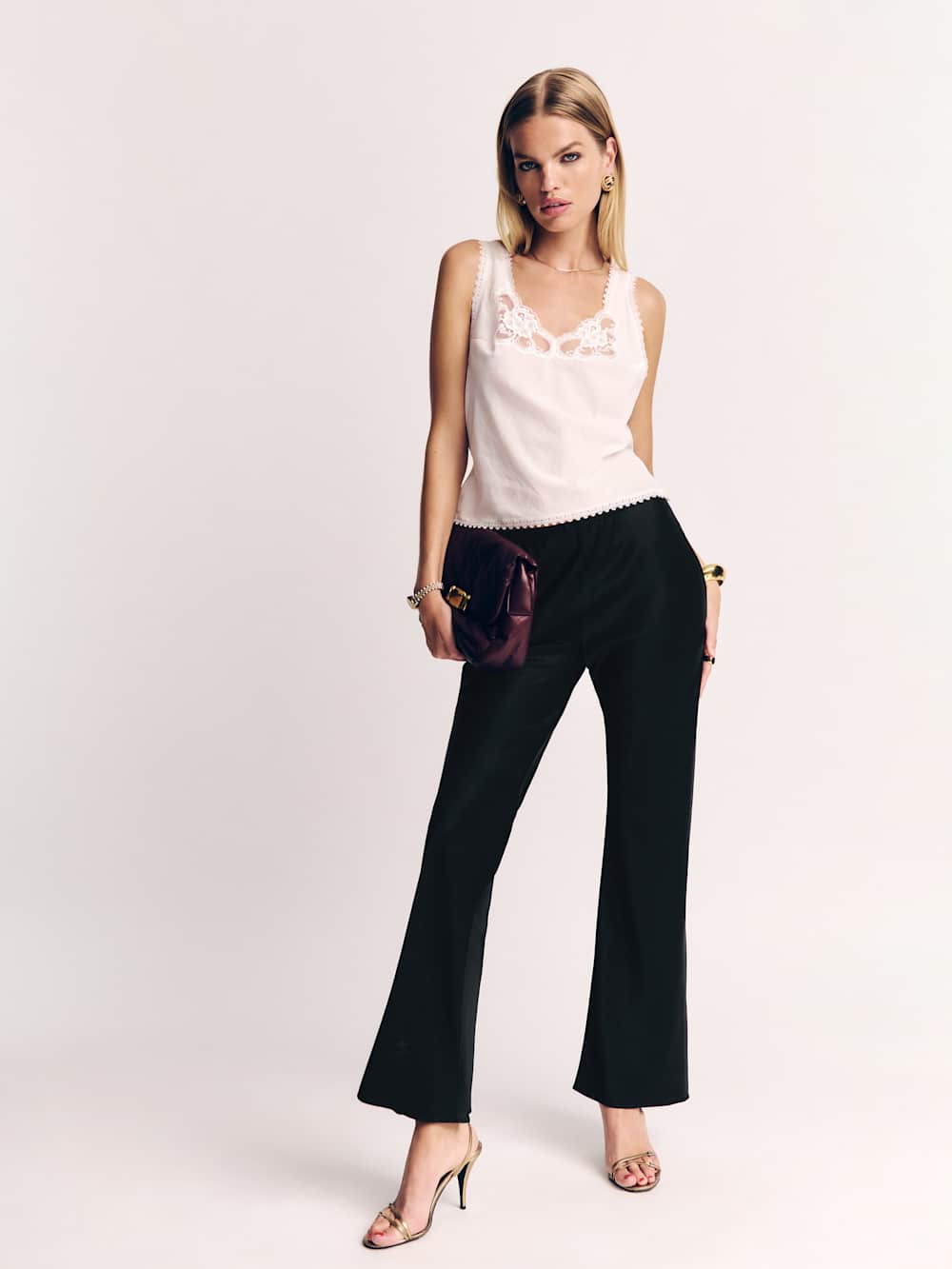 Up top. Shop the Lilu Top from Reformation, a sleeveless top with a v-neckline, lace detailing, and lace trim along the hem and neckline.