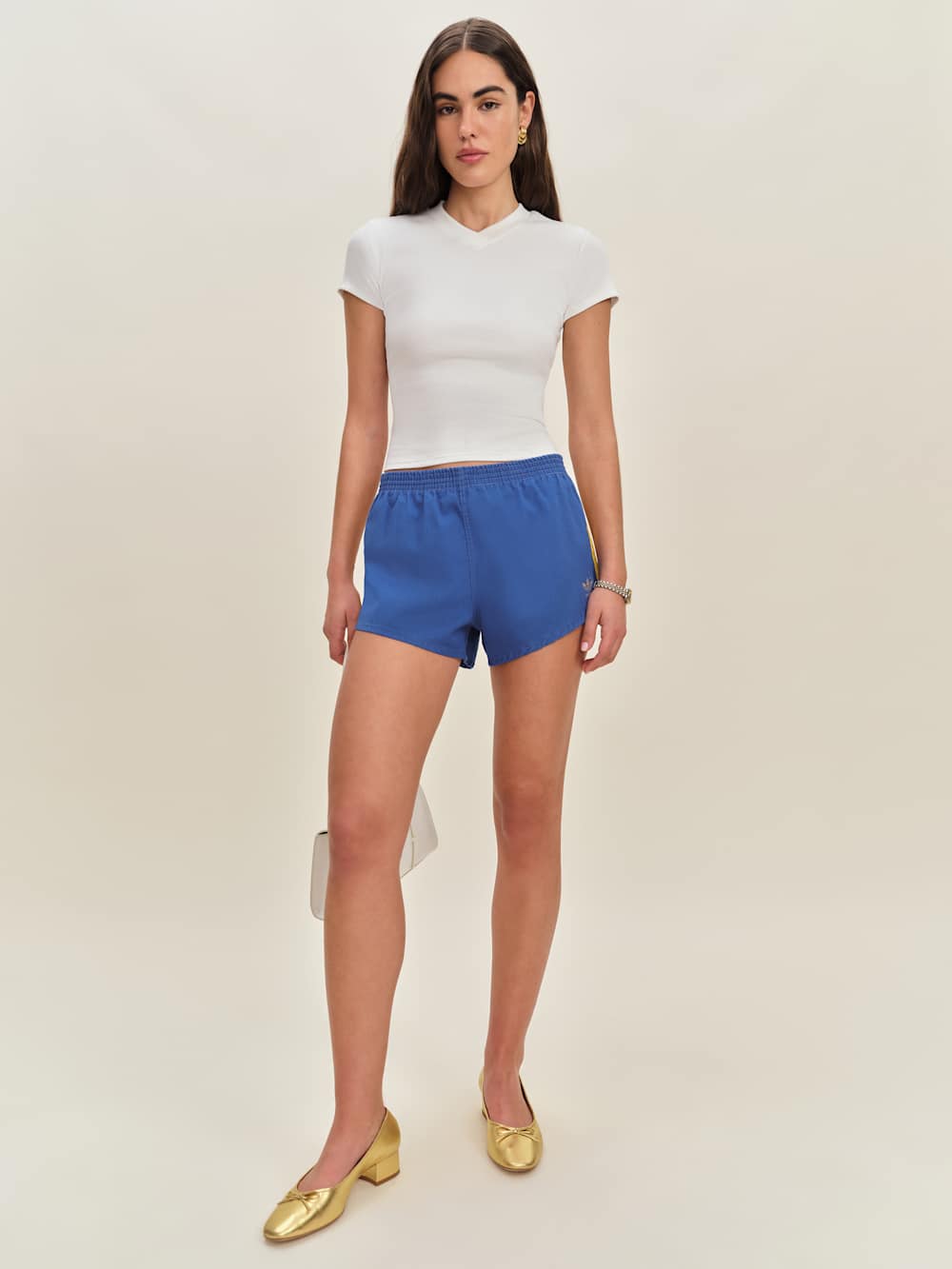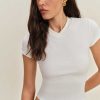 Shop the Lindie Tee from Reformation, a short sleeve knit tee with a high v neckline and cap sleeves.