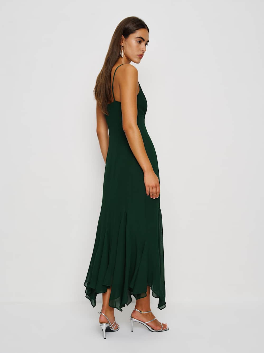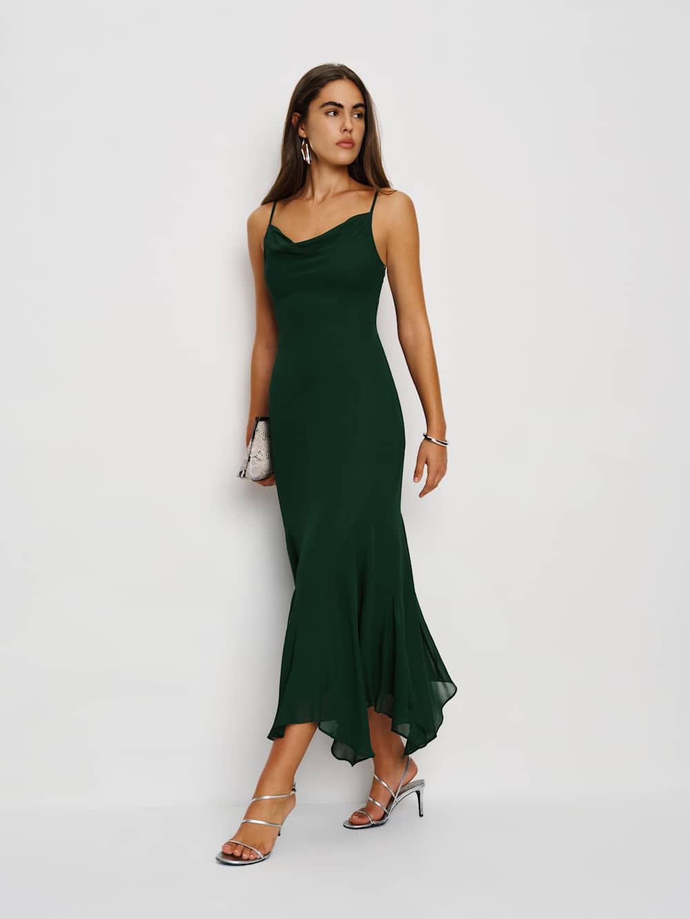 Romance for once. Shop the Lluvia Dress from Reformation, a sleeveless maxi dress with a mermaid fit and cowl neckline.