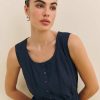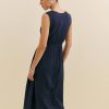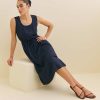 Wear the dress. Shop the Lonnie Dress from Reformation, a sleeveless midi dress with a scoop neckline, buttons at the neck, and an adjustable tie at the waist.