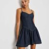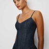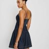 What do we have here? Shop the Lottie Denim Mini Dress from Reformation, a sleeveless mini dress with a scoop neckline and an A-line silhouette.