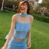 The model is wearing a size 0 and is 5’9", 23.5" waist, 34" hips, 34" bust.