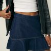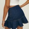 Wear the skirt. Shop the Madelyn Denim Mini Skirt from Reformation, a high-rise mini skirt with a drop waist and ruffle hem.