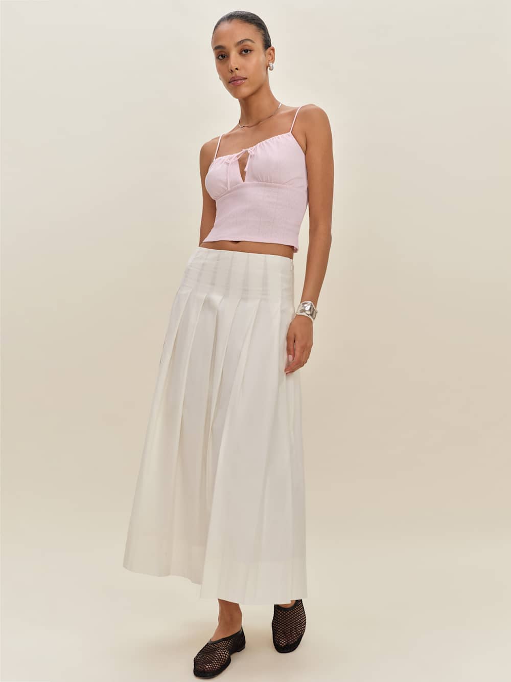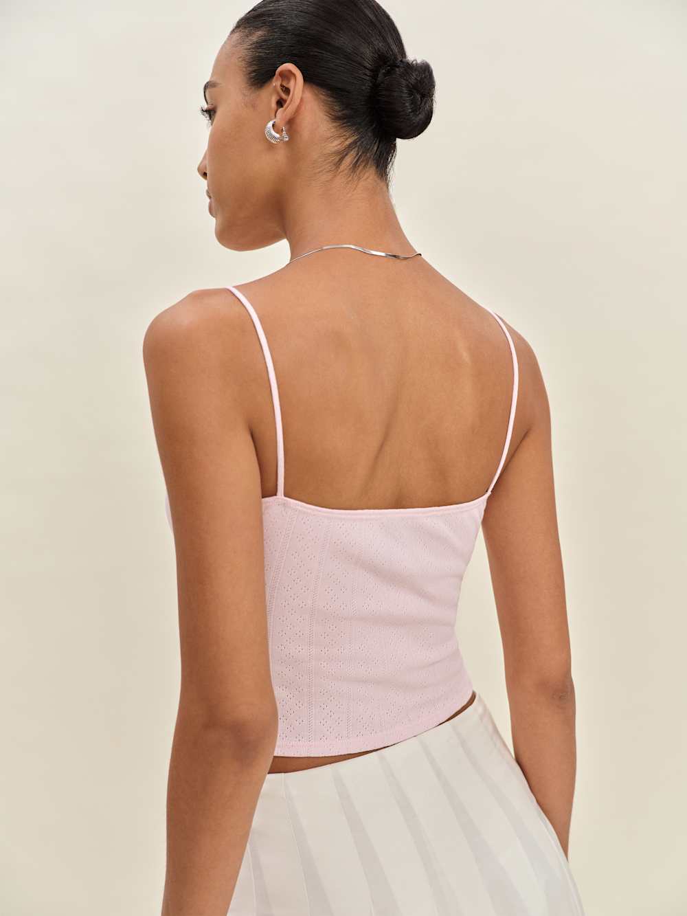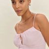Up top. Shop the Marissa Knit Tank from Reformation, a sleeveless knit tank with an adjustable tie at the neckline and keyhole cutout at the bust.